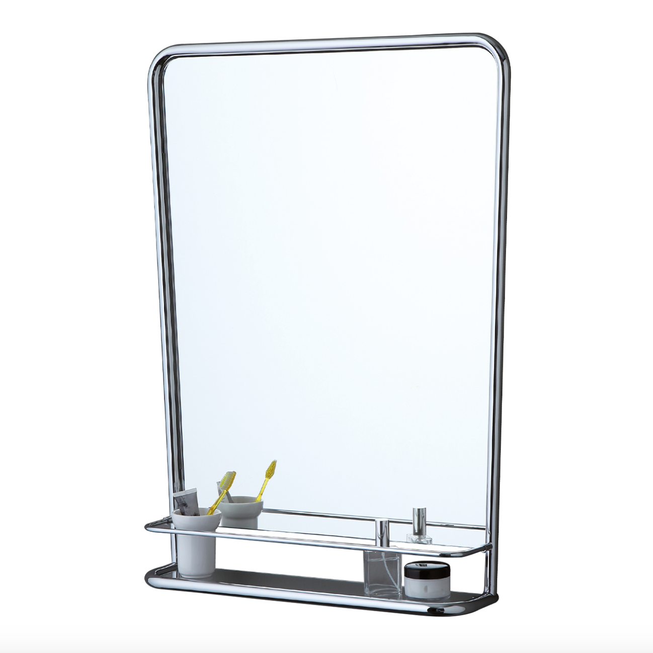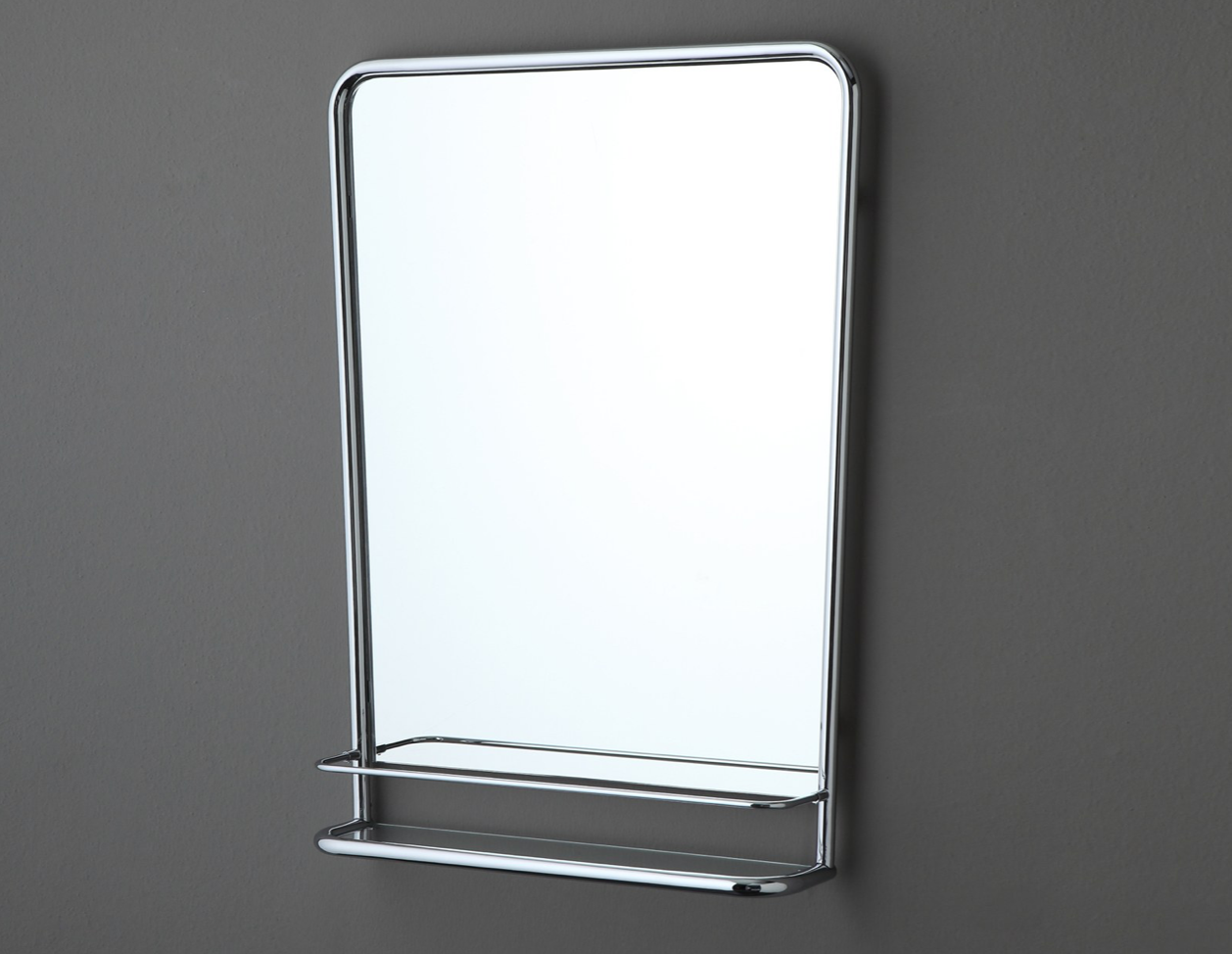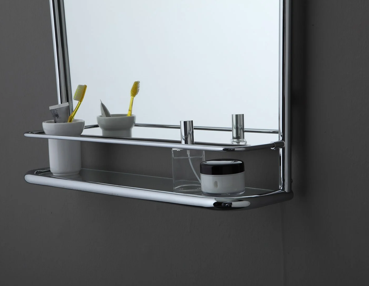 Trapezoidal mirror with metal frame and shelf Fifties Vintage style