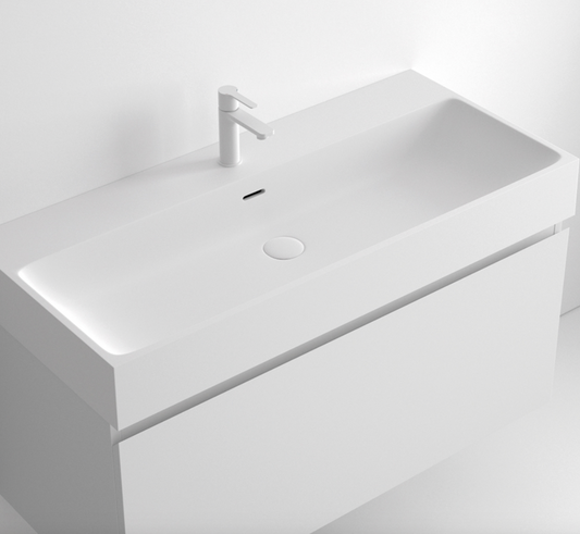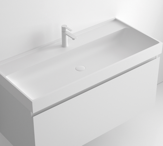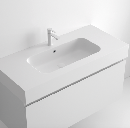 Polaris matte white countertop with inset sink for Maderó Atelier furniture