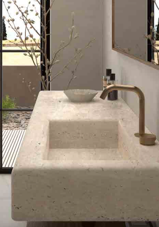 Marble countertop with skirt and integrated sink Itaca by Maderó Atelier
