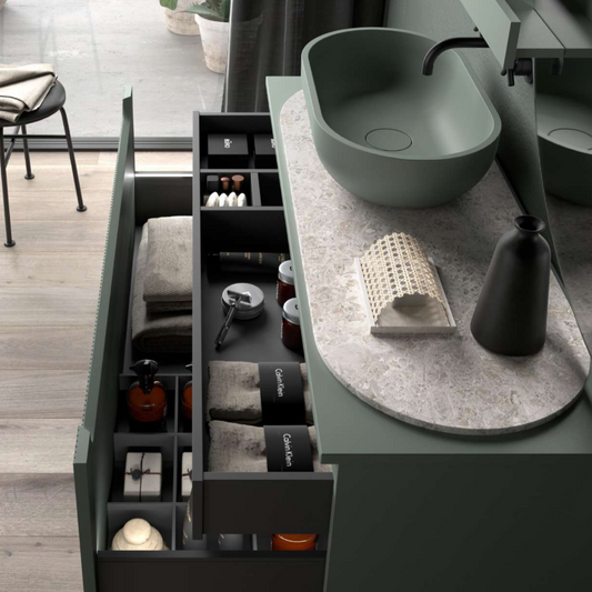 Madero Atelier Tribeca Stoneacril® countertop with skirting and integrated sink for Tribeca furniture