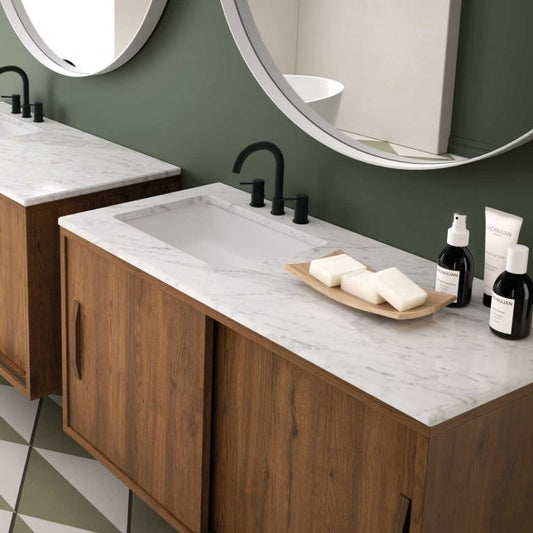 Walnut wood top for Kimono bathroom furniture by Maderó Atelier