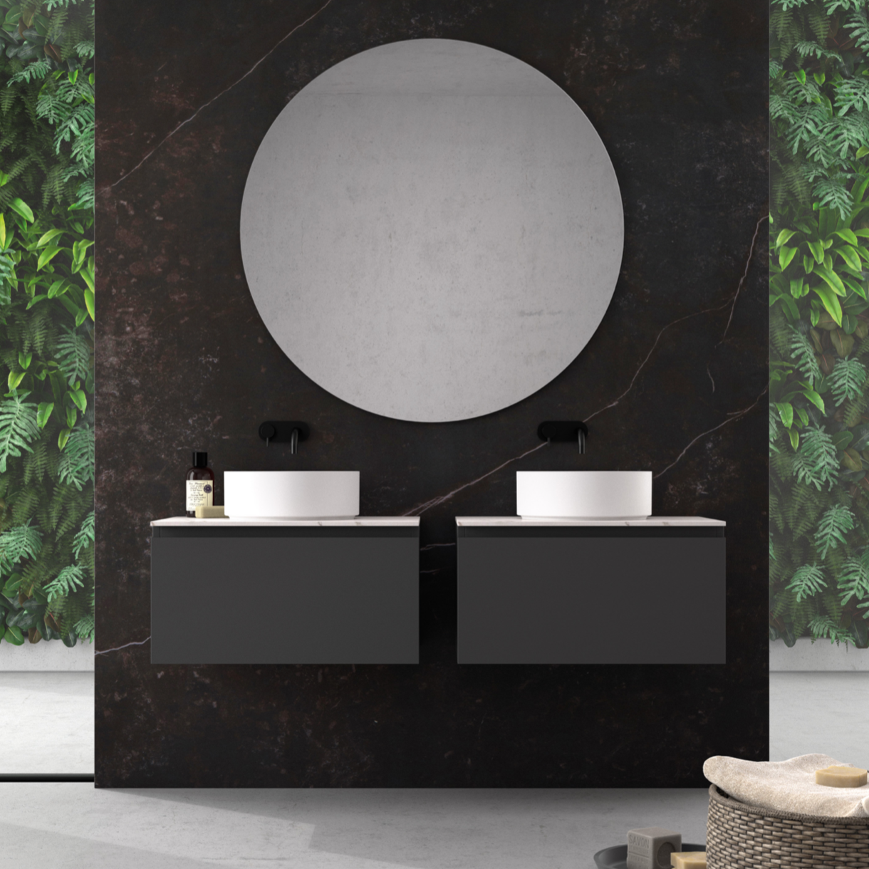 - 2 x Leo 60cm 1-drawer sink cabinet in Matt Platinum Gray lacquer
