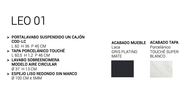 Any other combination, finishes or loose pieces, contact us at info@lavabosconestilo.com