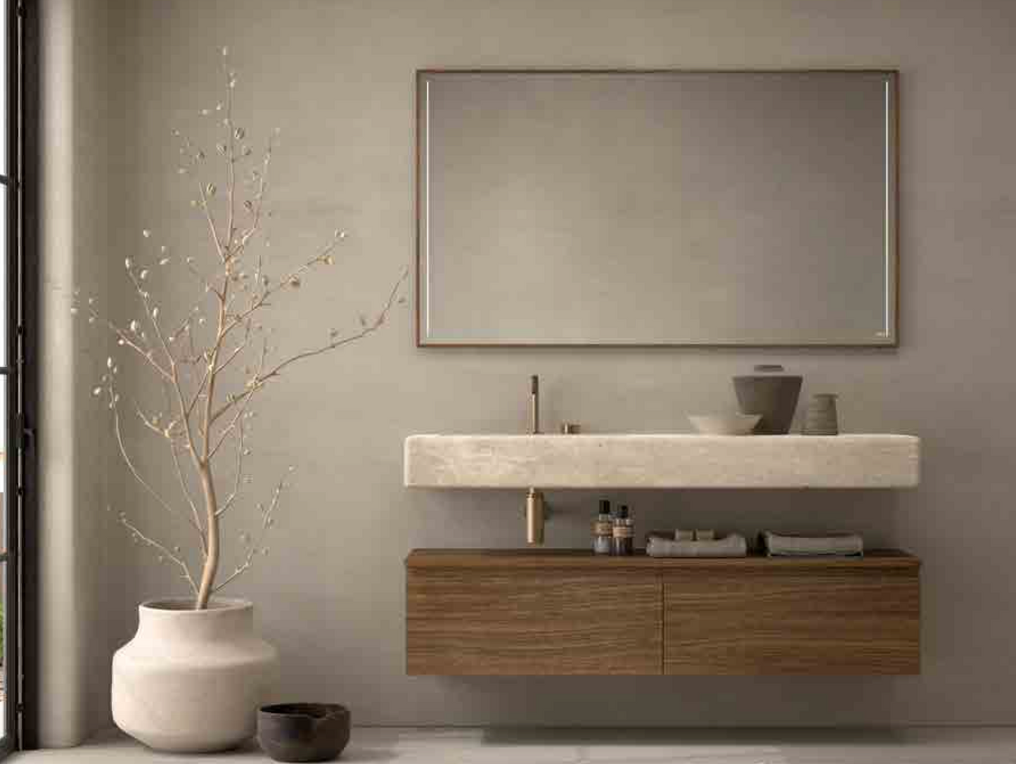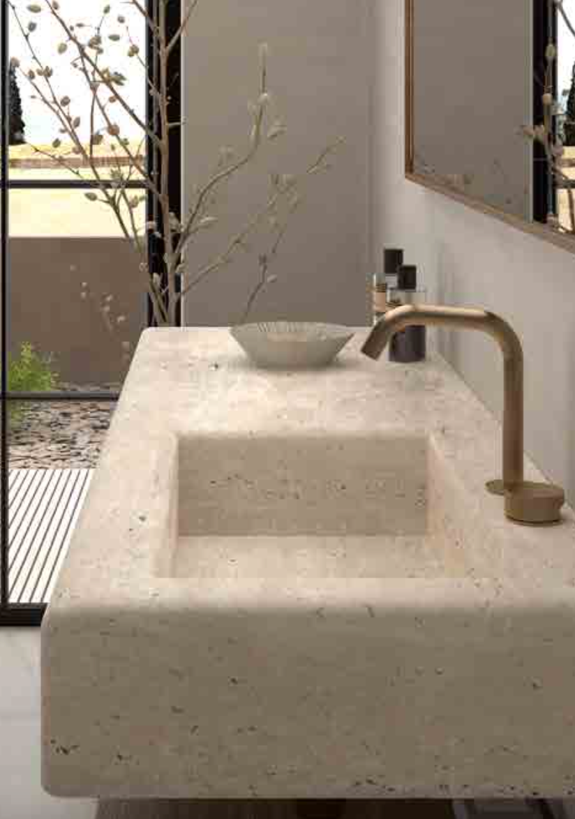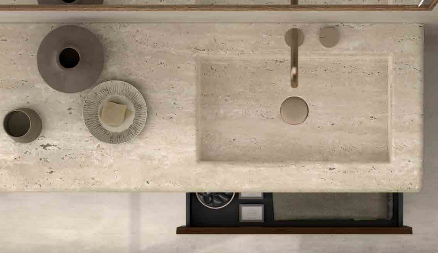 Marble countertop with integrated sink, compatible with the Leo and Cotton vanity unit collections by Maderó Atelier.