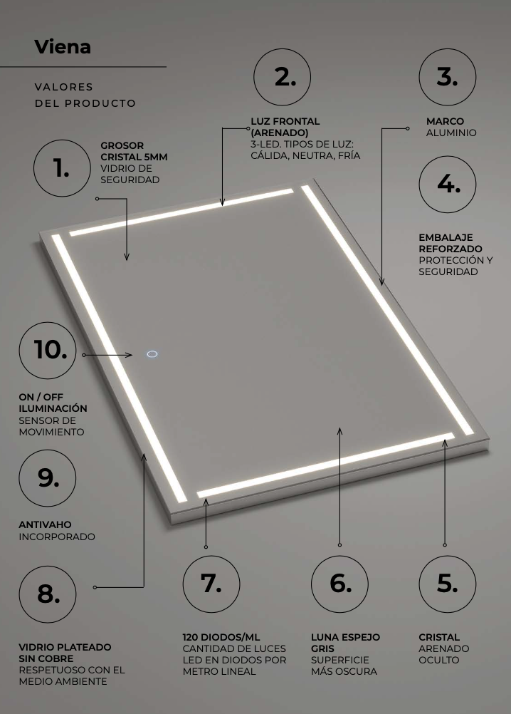 3-LED technology. Three types of light (warm 3,000K, neutral 4,000K and cold 6,500K).