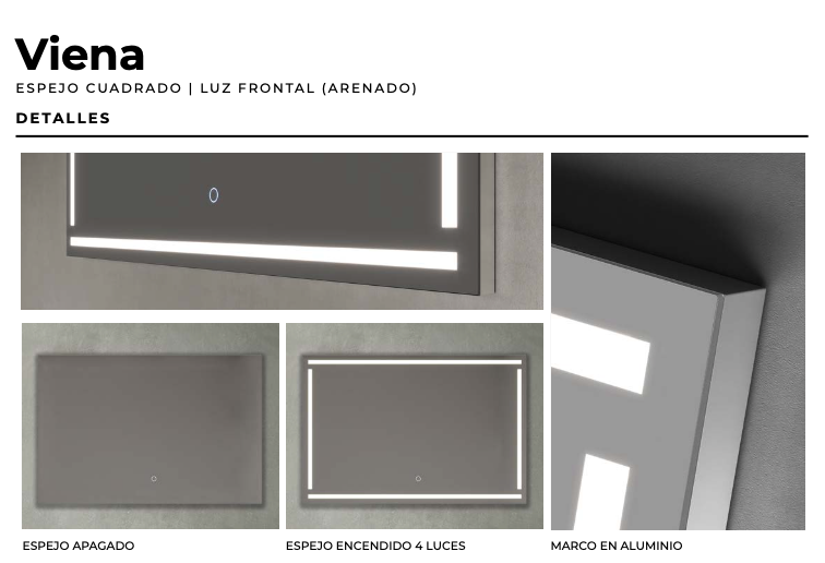 Square grey moon mirror with front light through the sandblasted bands on the glass.