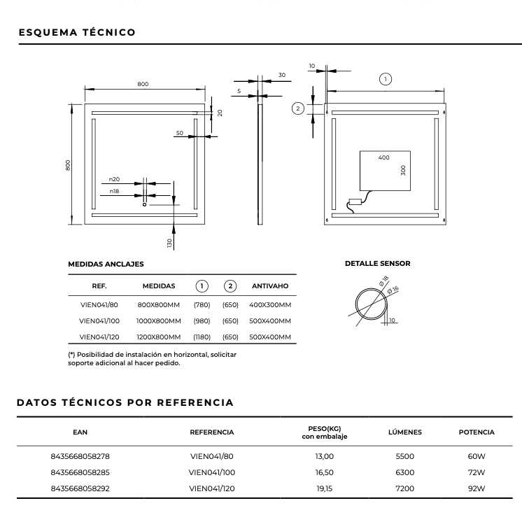 Sensor: ON/OFF lighting and built-in ANTI-FOG system.