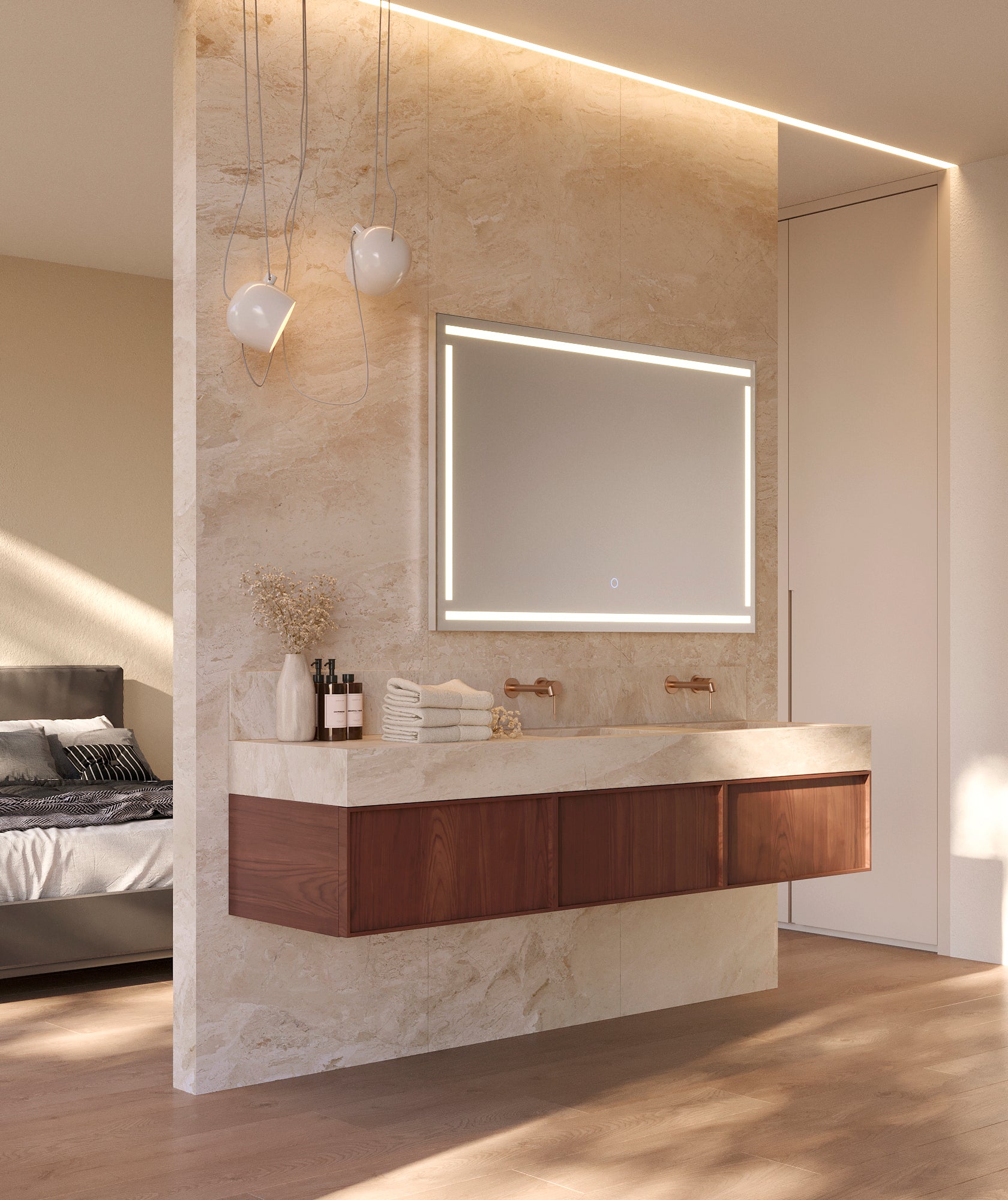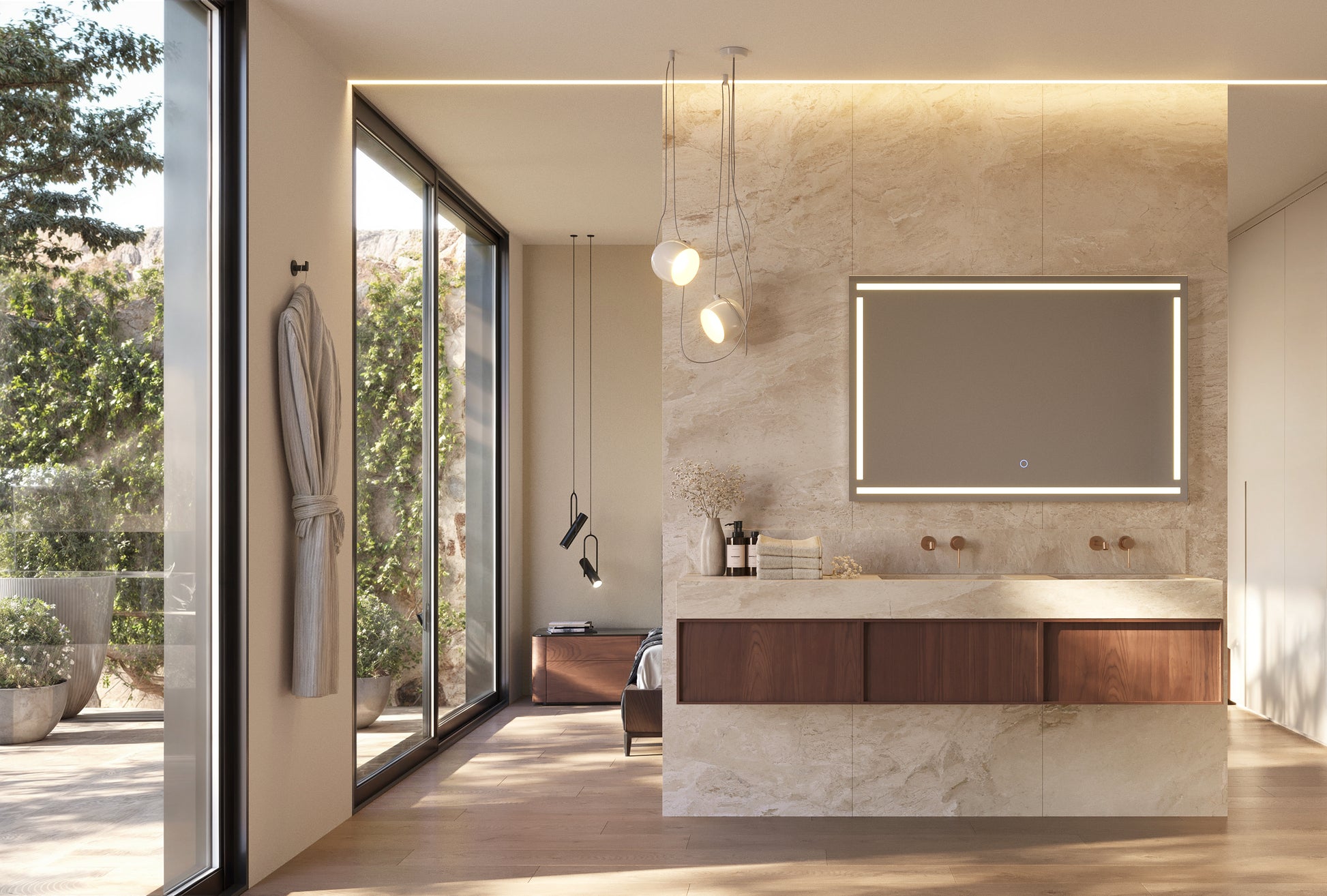 Ledimex Vienna sandblasted square bathroom mirror with front light