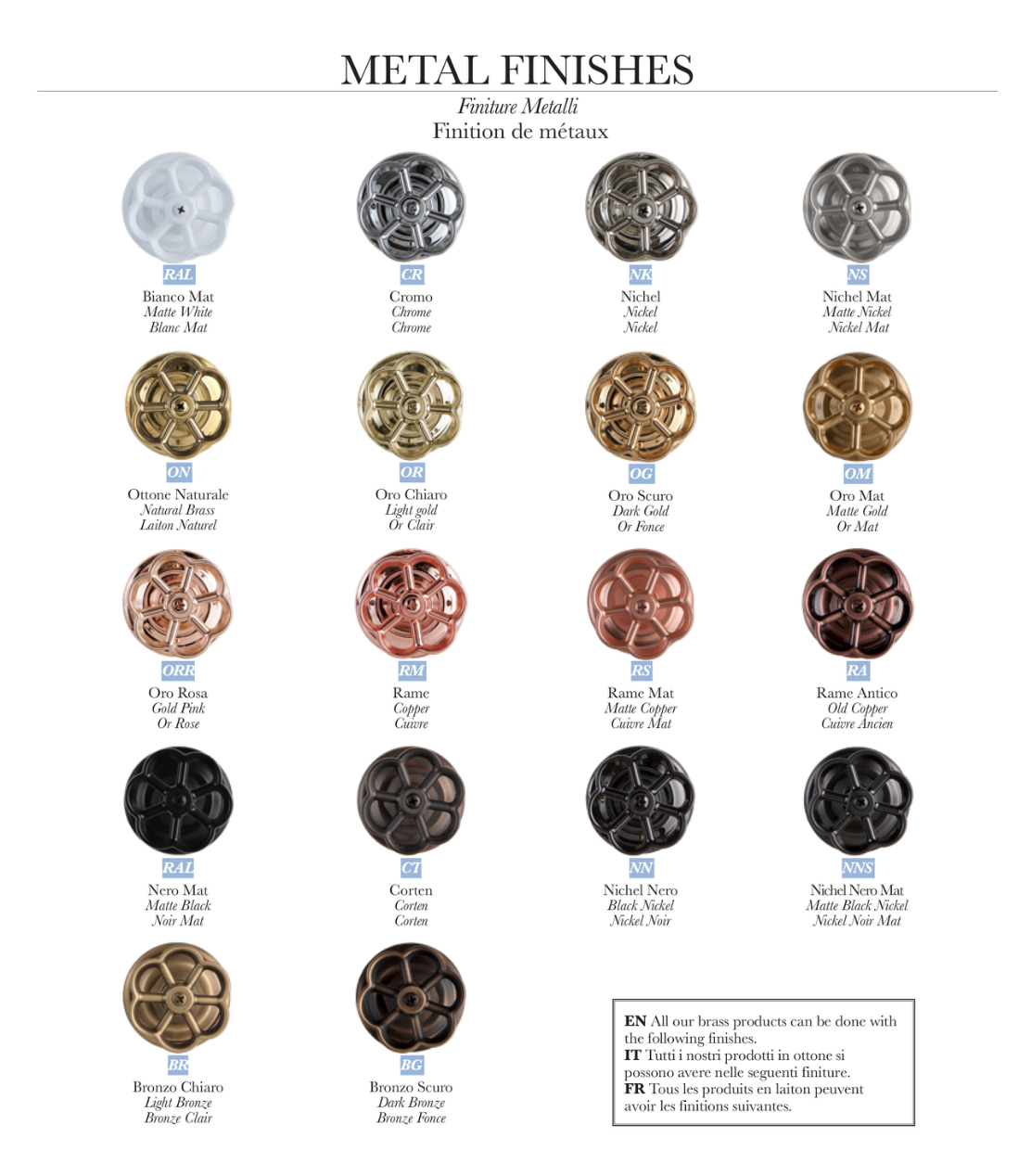 Finishes: Multiple metallic options (see image)