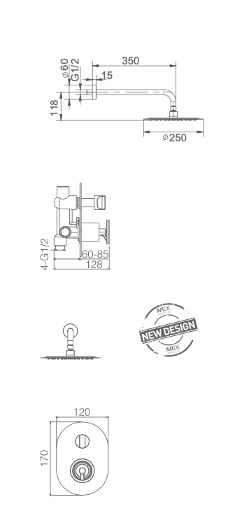 Shower handle support with wall water outlet. Built-in body directly into the wall Without register box.