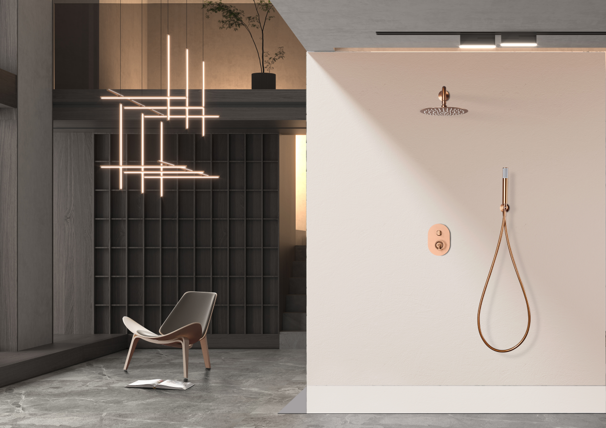 Olimpo brushed rose gold built-in shower set taps by Imex