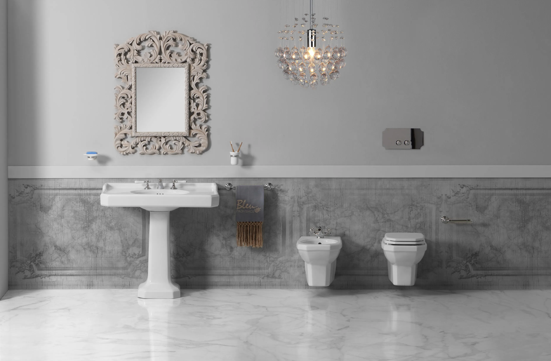 Provence'700 ceramic toilets are the symbol of retro chic and luxury of the 1900s of the Belle Époque. They are available in many matt or glossy colours (white, black, grey, taupe, pastel blue, pink, lemon yellow). ...) and in various models (floor-mounted or wall-hung toilet, monobloc toilet, high tank with chain and handle).