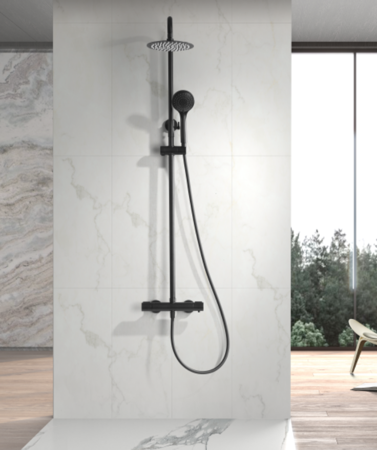 Imex Eco-Kent matt black thermostatic shower bar tap