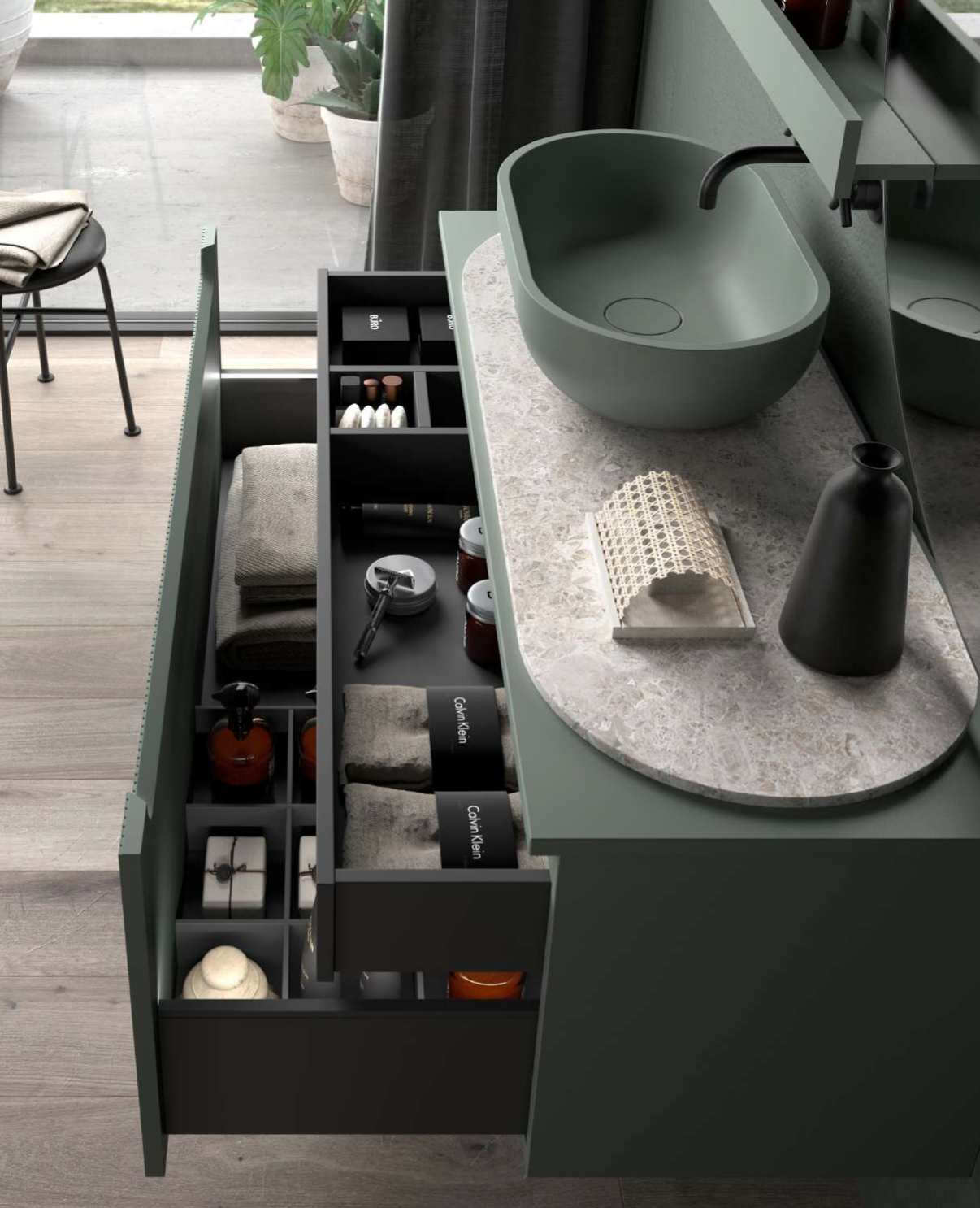 Vintage style bathroom set. Order plays a special role in the Kimono collection. Designed to dress the space in a sober and elegant way, without any ostentation. The “ikagai” of the Kimono collection is the search for well-being.