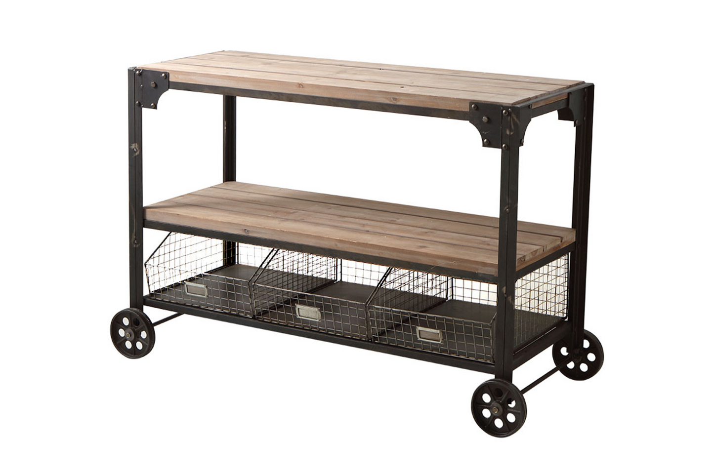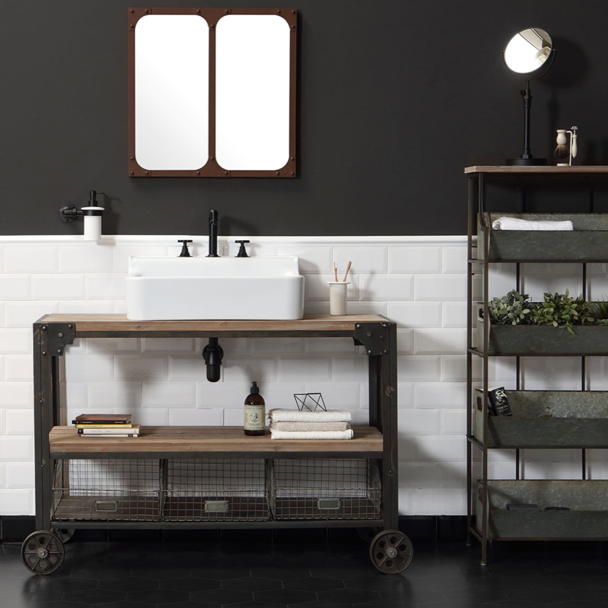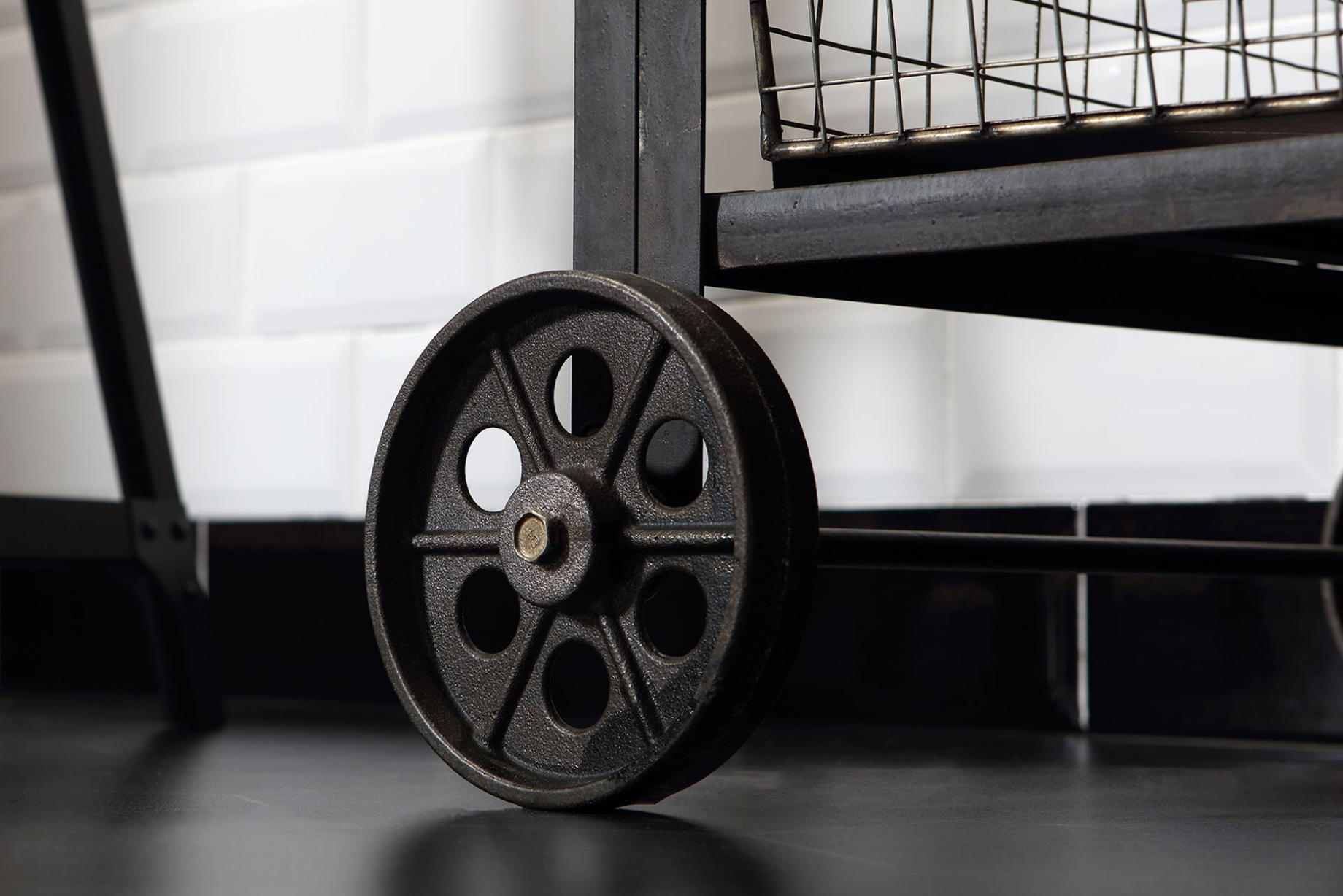 Industriales 1 is a wood and metal vanity unit, with wheels and 3 baskets. Industrial style