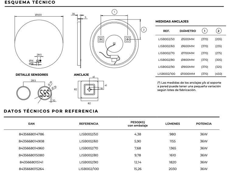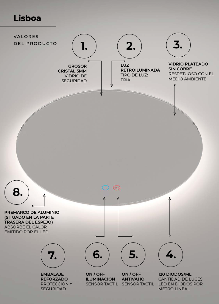 Espejo baño redondo retroiluminado anti-vaho Lisboa de Ledimex