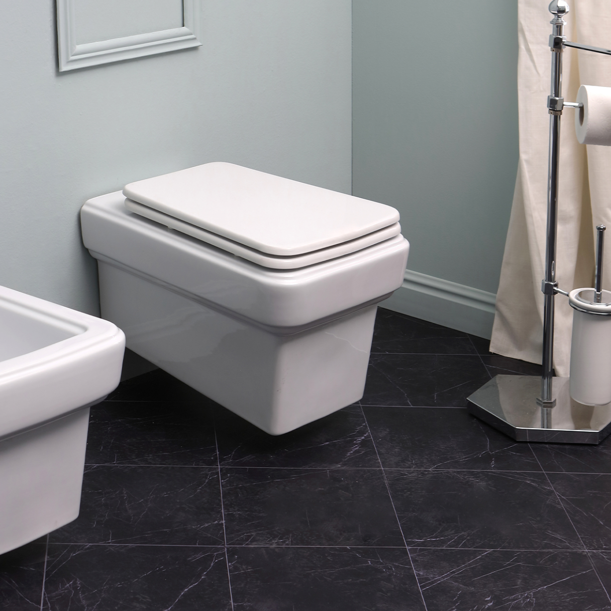 Este inodoro suspendido de cerámica combina el encanto del estilo vintage fifties con la modernidad funcional, ideal para baños que buscan un aire sofisticado y exclusivo. Su diseño elevado facilita la limpieza y aporta ligereza visual, mientras que su acabado de alta calidad asegura durabilidad y elegancia atemporal en cualquier espacio.