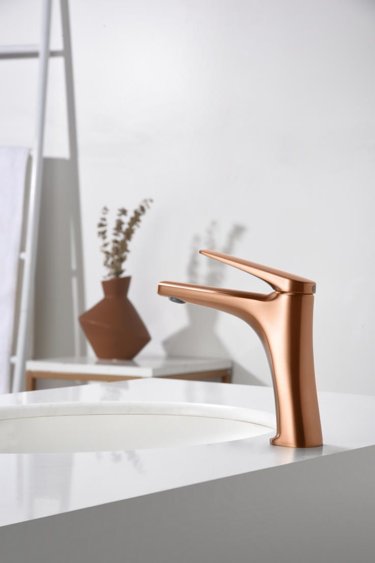 Robinets de lavabo monocommande Imex Delos en or rose brossé