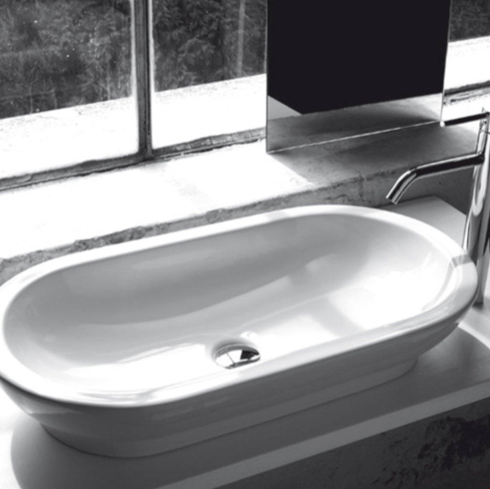 Vasque à poser ovale en céramique blanche de style moderne par Toscia Balneotherapy