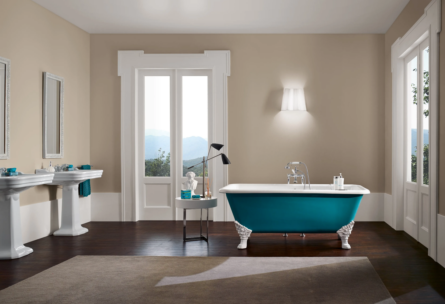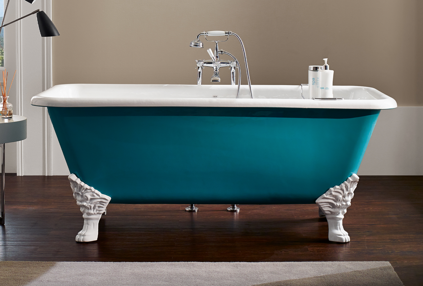 Bañera rectangular de estilo Vintage con patas, de la mejor calidad. Esmaltado en titanio de 2 mm, una gran variedad de colores, pies en hierro fundido con muchos acabados disponibles.