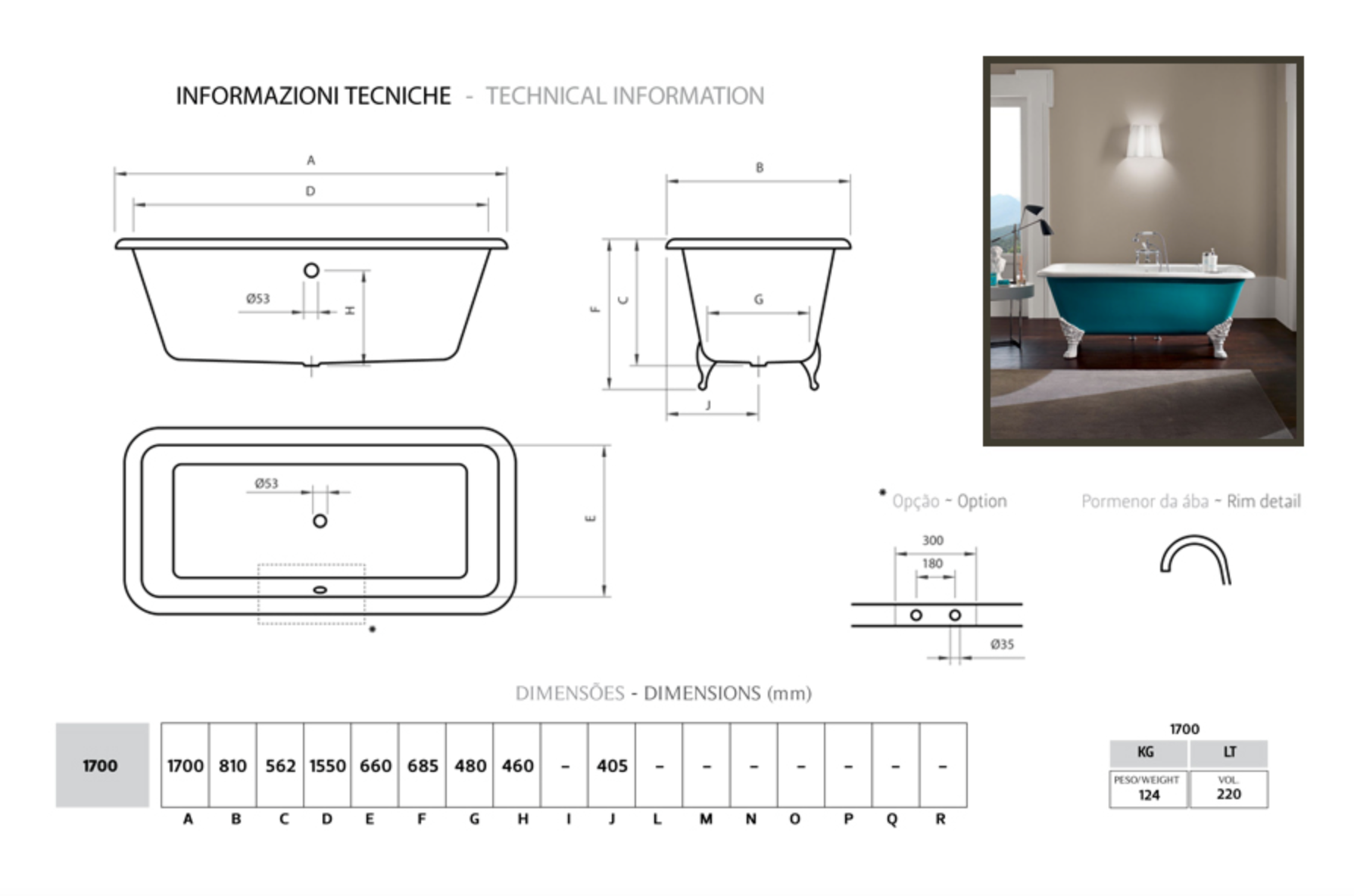 - Ref 1370 : cm 170x81 - 124 Kg - 220 L