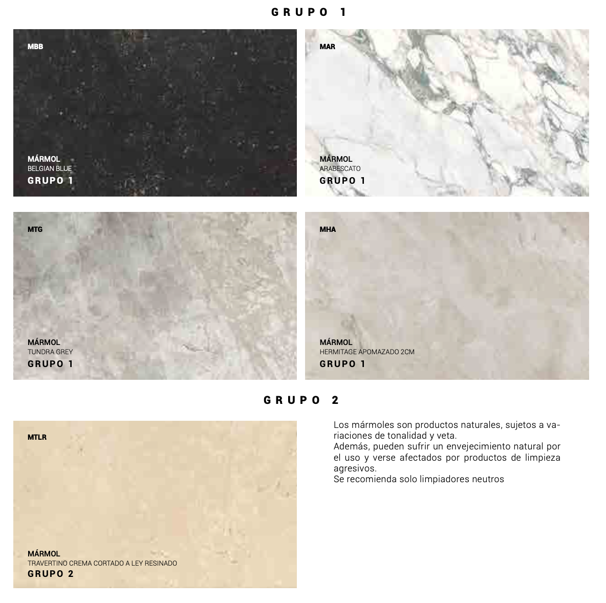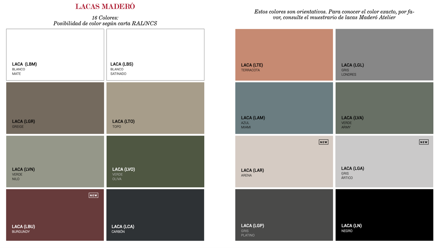 Mármoles,Lacas Maderó ,Lacas RAL (consultar),Maderas Robles o Nogal rayado/sin rayar.
