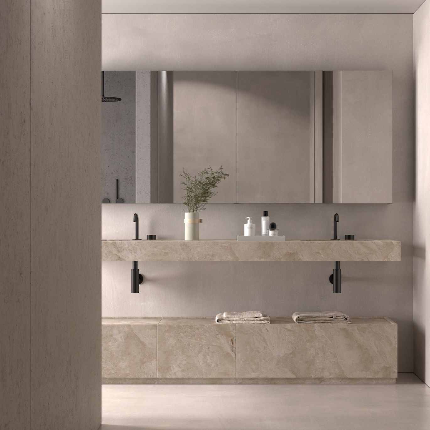 La colección Halter redefine la sofisticación en el diseño de baños al integrar materiales nobles como mármol, piedra y madera, creando un equilibrio perfecto entre elegancia y serenidad.